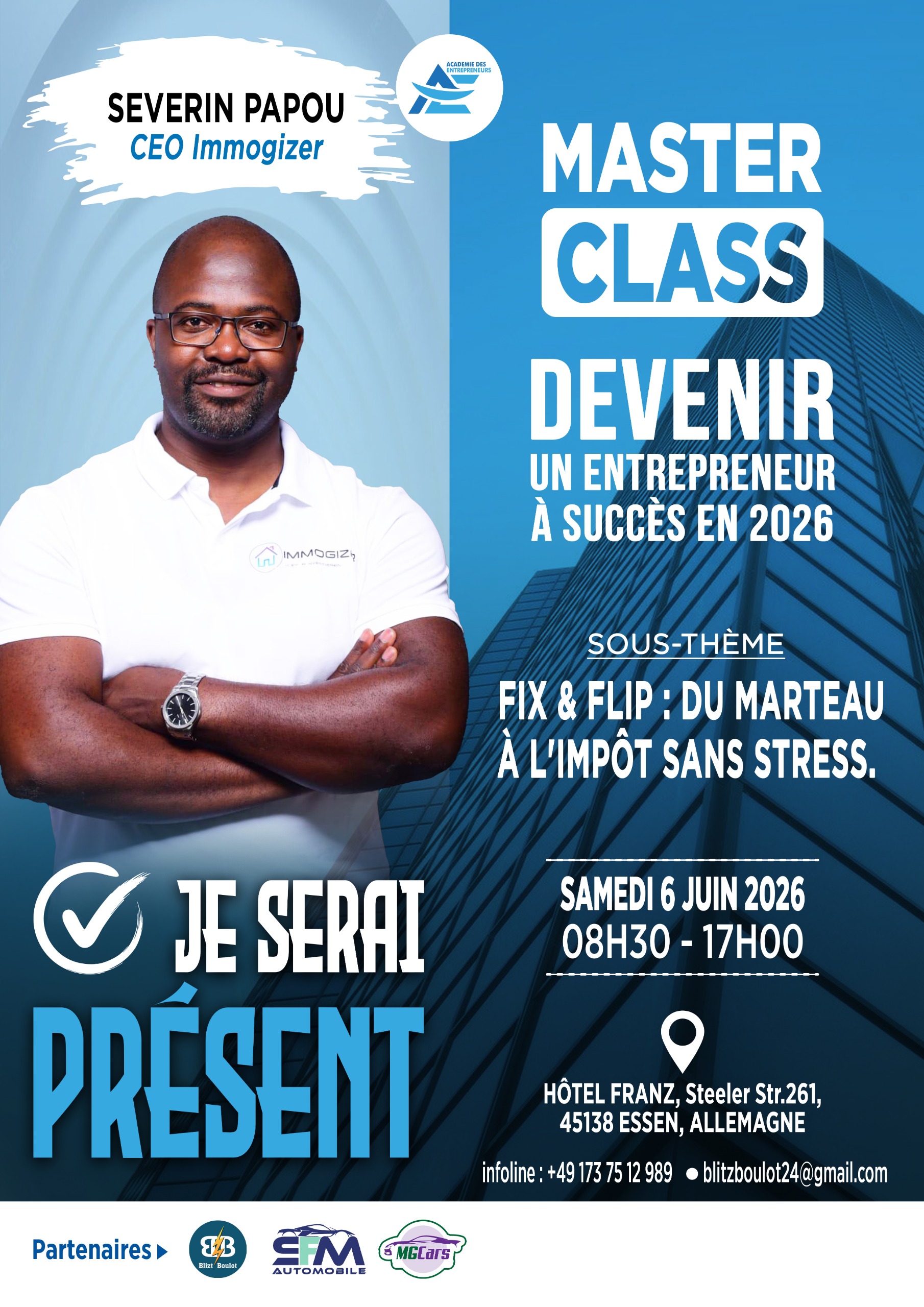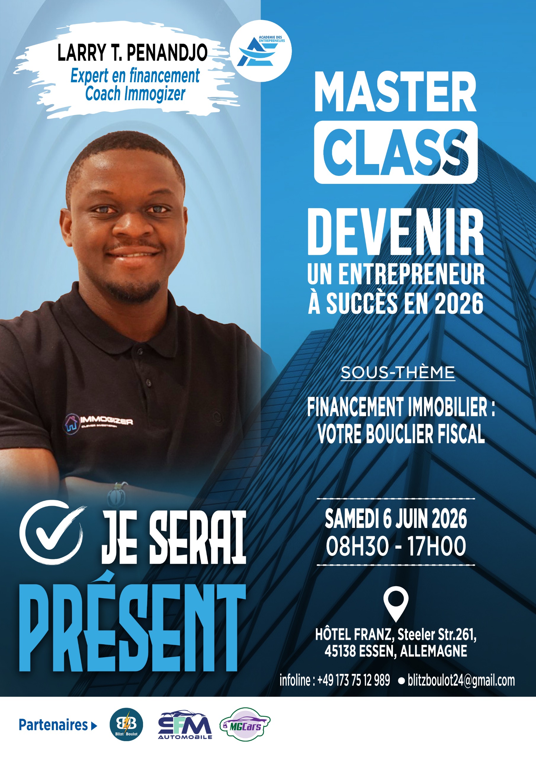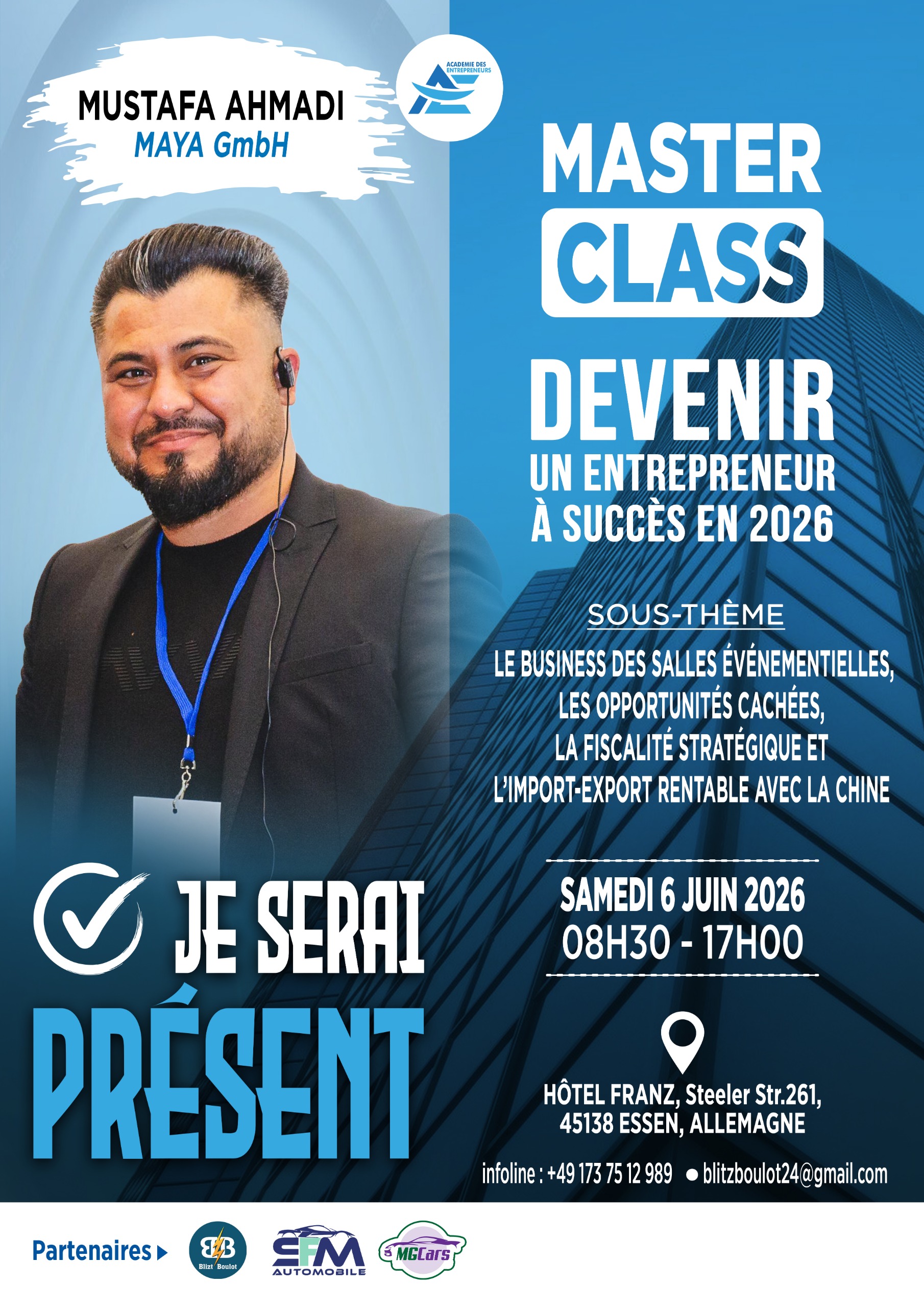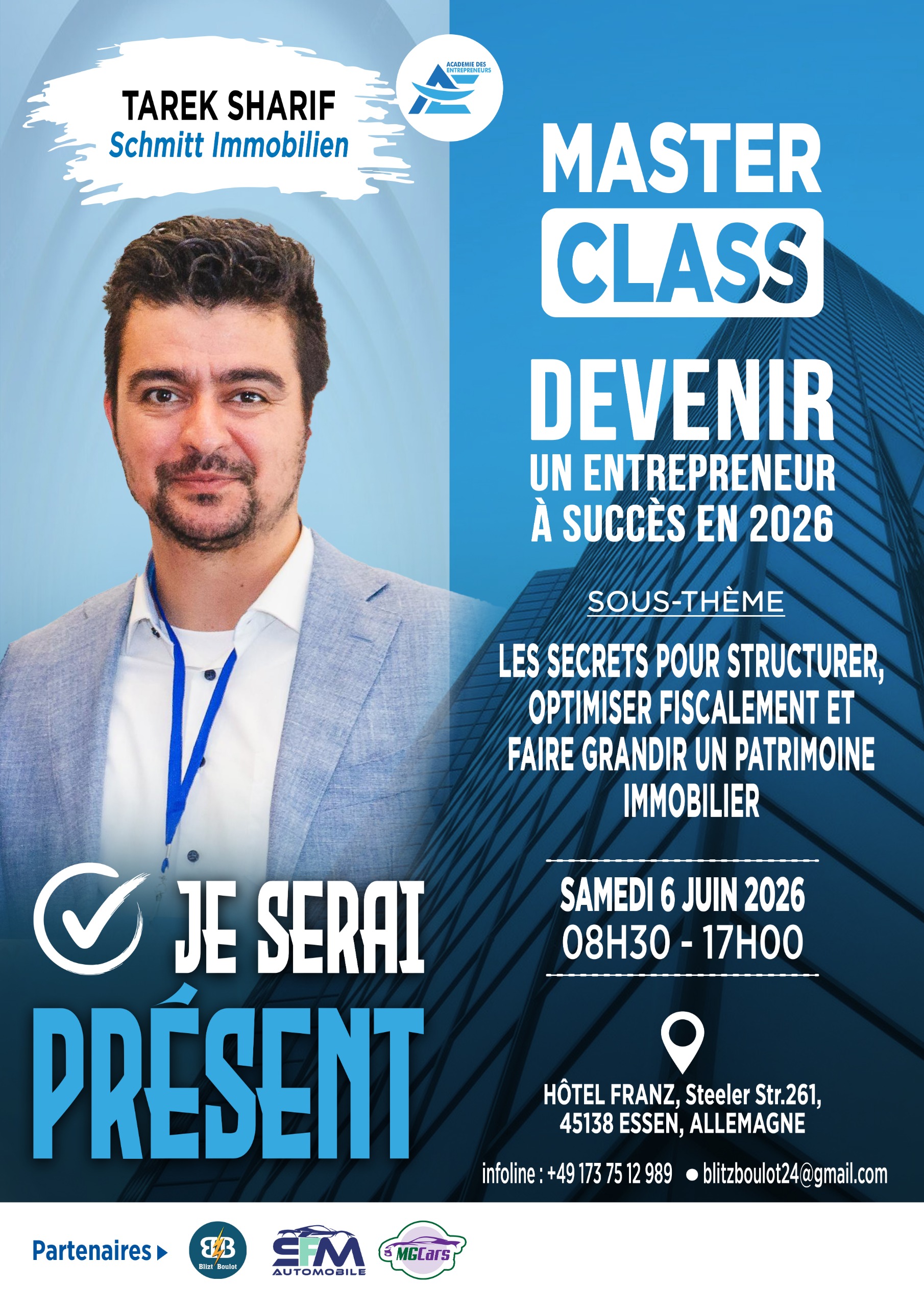 🚀 Grâce à la Masterclass ADE 2025, j’ai transformé mes idées en business scalable ! J’ai appris à structurer mon entreprise grâce aux clés de M. Tarek Sharif et à valider un modèle immobilier rentable avec Severin Papou. Un tournant décisif pour mon projet !